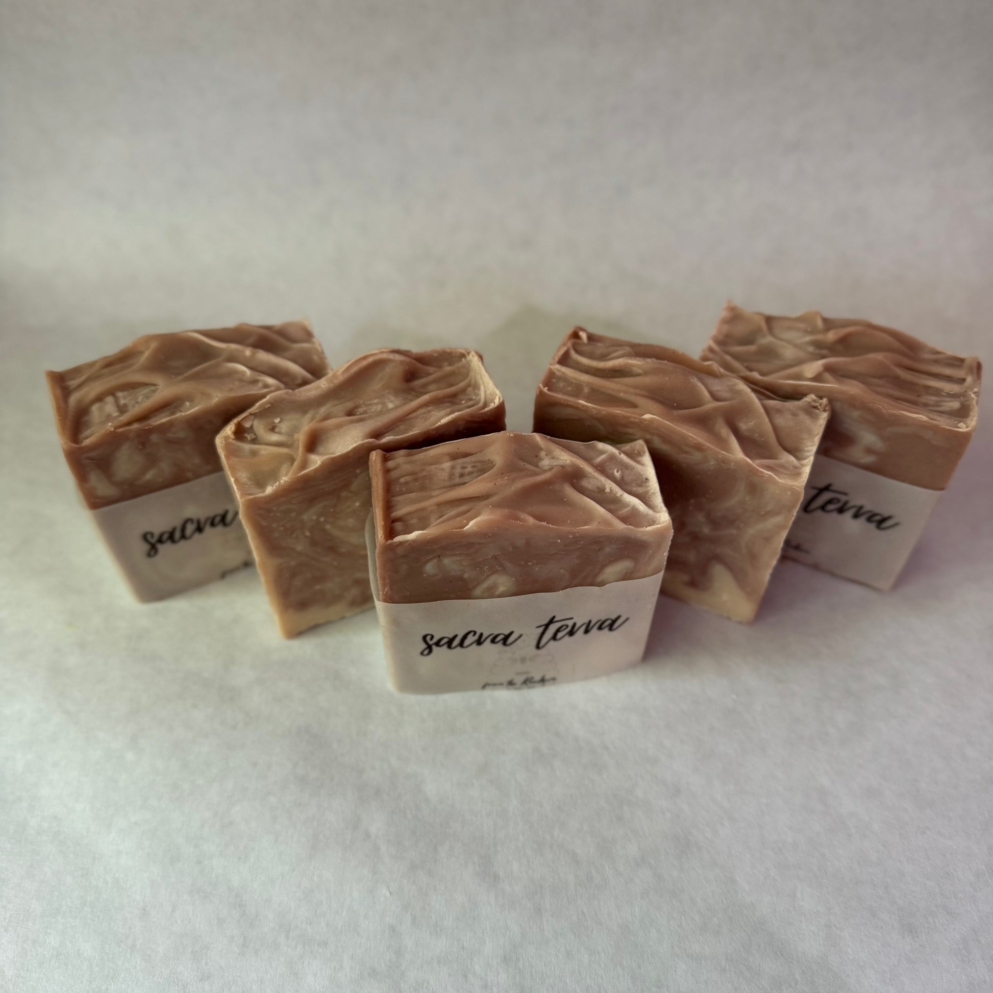 Daydream about a picnic in an orchard, laying on a blanket in the sun with Sacra Terra, or sacred earth. This cold process soap is lightly scented and smells like a fresh picked blood orange that’s been warmed by the sun. It’s colored with a swirl of Moroccan red clay to ground the essential oils and represent the blood orange. The other swirl is uncolored and shows the beautiful result of a mix of RSPO palm oil, coconut oil, olive oil, castor oil, avocado oil, apricot oil, and almond oil.